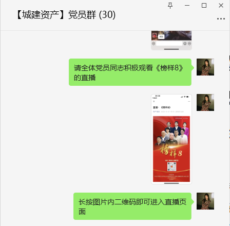 《榜樣8》專題節(jié)目直播當(dāng)天及時(shí)在公司黨員群內(nèi)轉(zhuǎn)發(fā)觀看時(shí)間和觀看方式