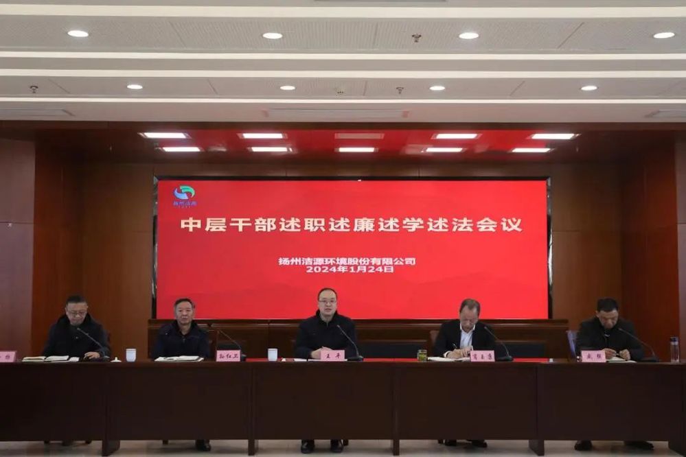 為進一步加強公司干部隊伍管理,全面總結2023年工作成績,推動2024年各項工作再上新臺階,1月24日下午,潔源環境公司組織召開2023年度中層干部述職述廉述學述法會議,公司領導班子成員、全體中層干部及部分職工代表參加會議。