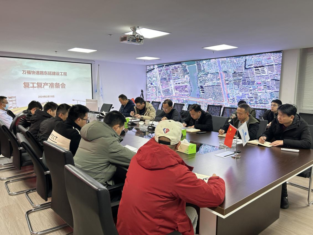 2月19日上午,上善公司集中建設項目指揮部組織召開了復工復產會議,動員快速路全體建設者迅速調整心態、收心歸位,并對節后工作進行了全面部署,按下節后復產復工“啟動鍵”。
