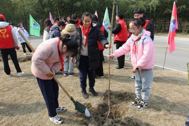 活動現場在志愿者的指導下,學生們分組進行植樹。他們手持鐵鍬、水桶等工具,親手挖坑、栽樹、澆水,體驗著勞動的樂趣和成就感。植樹過程中,學生們不僅了解了植樹的技巧和意義,更培養了他們的環保責任感和團隊協作精神。