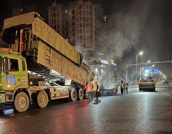 繼年前2月3日完成底層瀝青攤鋪后,上善公司年后一如既往按照計劃,做好復工復產(chǎn)的同時,根據(jù)廣陵區(qū)住建局和建設單位最新要求,在3月底“揚州鑒真半程馬拉松”比賽召開前,完成江都路項目所有的施工任務。為此,項目部科學謀劃、精心部署,積極調動公司技術骨干人員、“青年突擊隊”以及“青年安全生產(chǎn)示范崗”成員在現(xiàn)場進行安全管理、交通秩序管控及施工任務的統(tǒng)籌工作。經(jīng)過團隊三天兩夜的凝心聚力、攻堅克難,最終如期完成了江都路三標段主干道及慢車道面層瀝青攤鋪任務并順利通車。