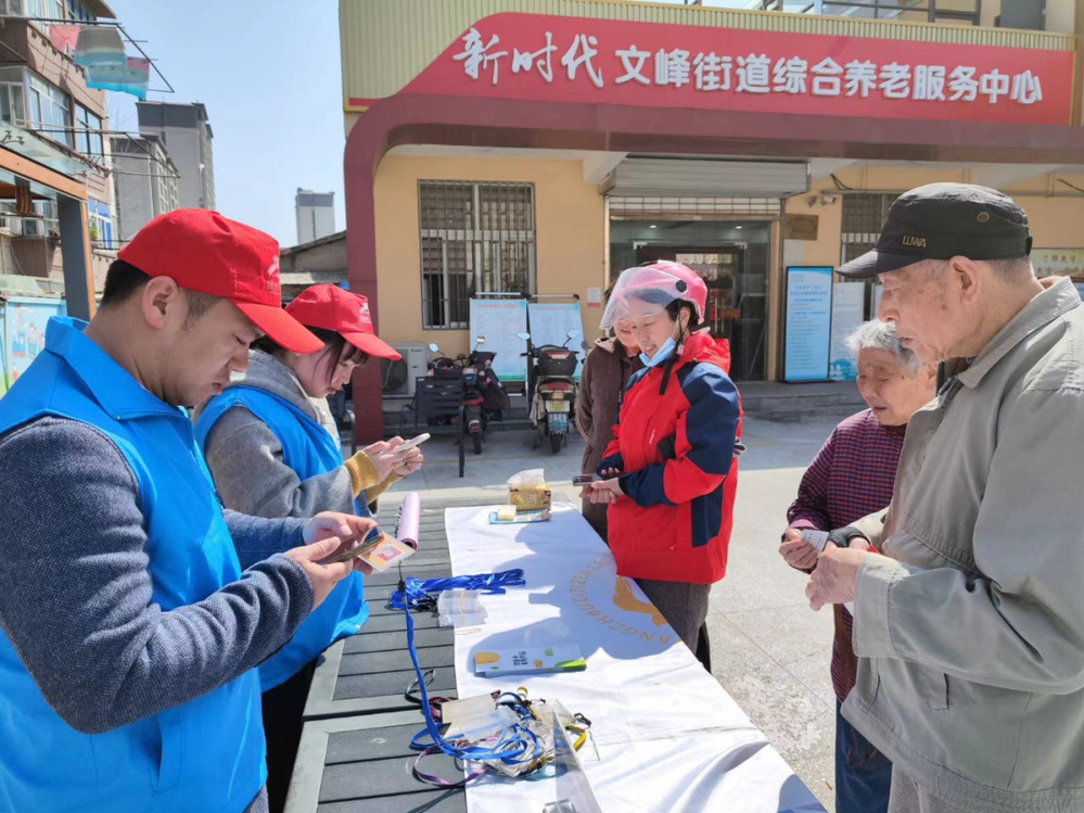 活動現場志愿者們發揮公司職能和優勢,聚焦社區老年人需求,將“臨時網點”建在居民家門口,讓市民少跑腿。現場為市民提供老年卡年審、市民卡充值、免費更換卡套等服務,并向前來的市民宣傳“我的揚州APP”線上服務功能,通過與市民面對面交流,詳細指導線上APP使用方法,并耐心解答市民提出的各種問題。黨員志愿者們的專業性、服務性受到了現場群眾的一致好評。
