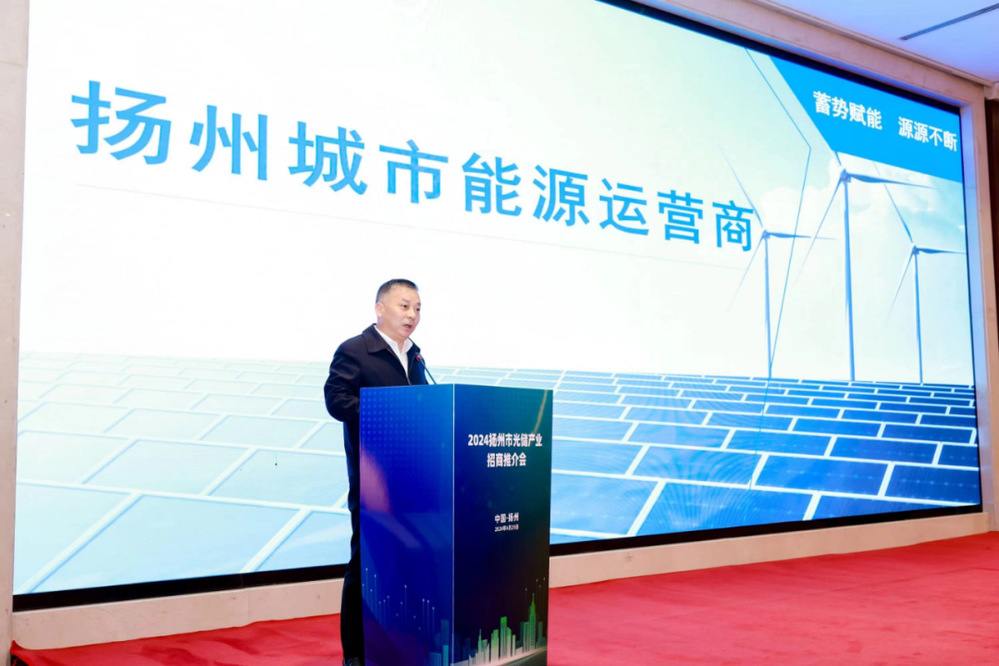 4月25日,2024年揚(yáng)州市光儲(chǔ)產(chǎn)業(yè)招商推介會(huì)在花園國(guó)際大酒店舉行。城控集團(tuán)副總經(jīng)理、能源集團(tuán)董事長(zhǎng)孔德存出席活動(dòng)并致辭,相關(guān)人員陪同。