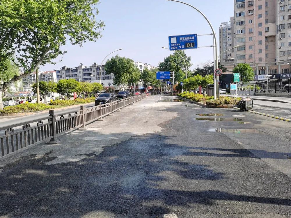 “給它放倒、給它放倒,扶住,抬穩(wěn)……”4月26日夜里,原本從交叉口往南的大學(xué)南路施工圍擋被拆除,施工人員正在對半幅道路鋪設(shè)瀝青。4月27日,大學(xué)南路半幅道路恢復(fù)通行!