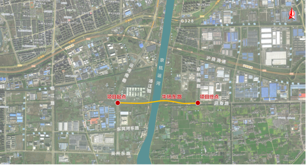 華揚路跨京杭大運河通道,路線全長約1.9km,該項目是揚州城市干線路網(wǎng)的重要組成,是京杭運河沿線重要的跨河通道。