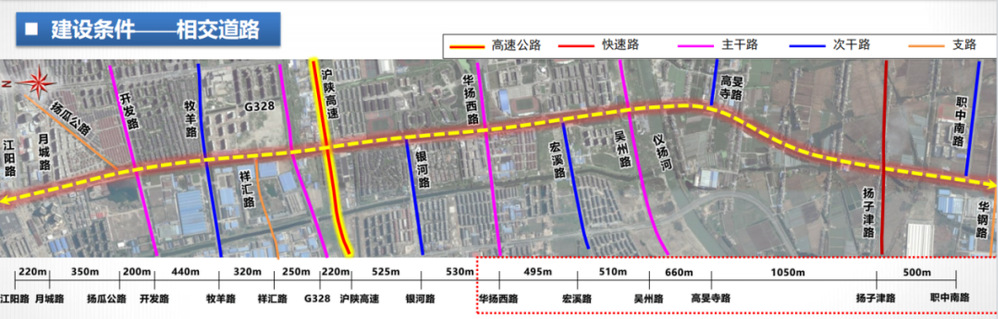 潤揚南路快速化改造工程(華揚西路-揚子津路段)為潤揚南路快速化改造工程二期工程,北起華揚西路,南至揚子津路,全長約3.3km,是主城區(qū)與南部片區(qū)快速聯(lián)絡通道。