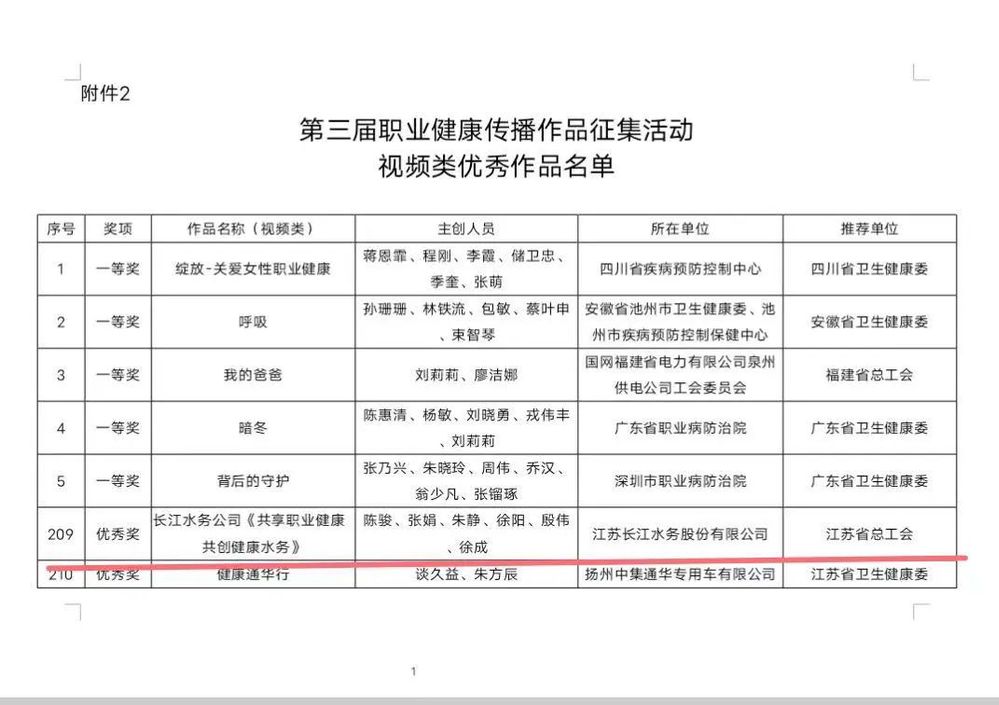 江蘇長江水務(wù)股份有限公司將以此次獲獎(jiǎng)為契機(jī),圍繞職業(yè)健康重點(diǎn)工作不斷提升職工職業(yè)健康素養(yǎng)水平,創(chuàng)作出更多的精彩作品,積極傳播職業(yè)健康知識,傳遞健康工作理念,為營造全社會關(guān)注職業(yè)健康的濃厚氛圍做出更多貢獻(xiàn)!