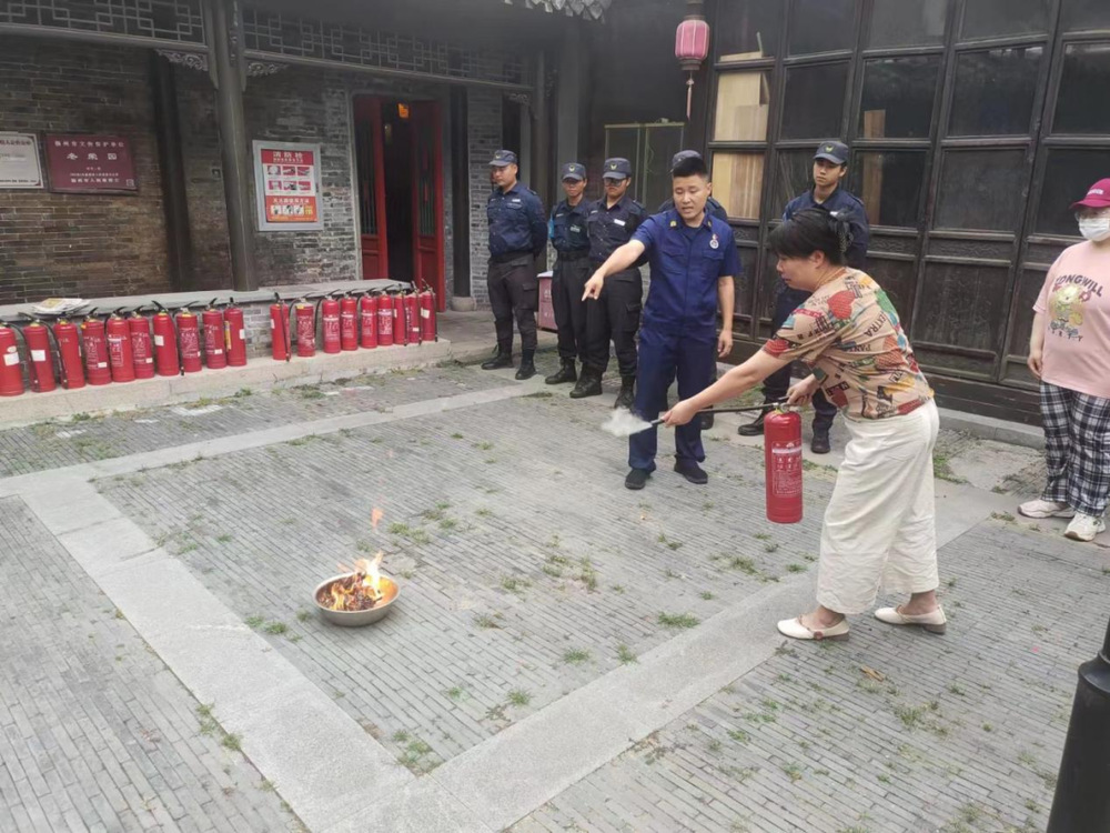 為進一步加強已租賃文物建筑火災防控能力,增強文物建筑從業人員消防安全防范意識和突發事件應變能力,確保文物建筑物的消防安全,6月26日下午,名城公司東關街經營管理公司邀請廣陵區消防大隊宣傳員,在省級文保單位冬榮園內進行了消防安全應急演練,街區安保人員、文保單位從業人員參加演練。