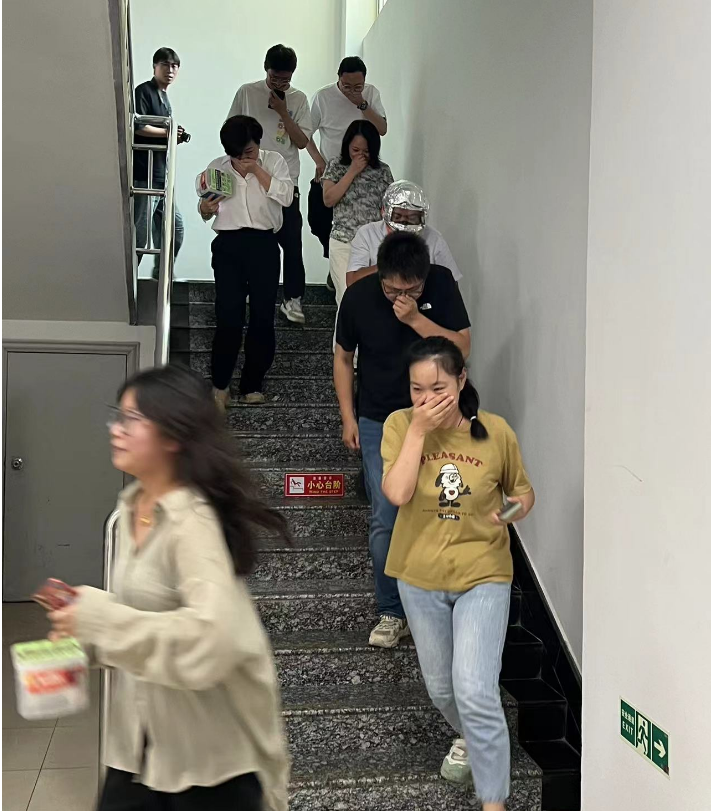 逃生疏散演練環節包括演練啟動、險情警報、疏散逃生、演練結束和現場清理。整個過程現場指揮有序,演習人員服從指揮,相互提醒,反應迅速,安全撤離,在較短時間內完成應急疏散演練任務,體現出大家的良好合作精神和應急處置能力,達到了預期目的。