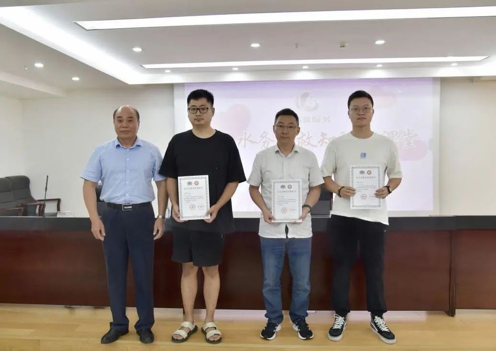 此次急救知識培訓包括理論講解、現場演示、實踐操作三個環節,揚州市急救中心汪茂勝、吳枝兩位老師結合多年的工作實踐,通過真實的案例為公司職工普及急救黃金時間,重點講述了心肺復蘇、AED除顫儀、常見意外和疾病(溺水、中暑、癲癇、心梗、中風)等相關急救知識的處置方式、正確步驟和注意事項。參與培訓的職工們現場分組參與演練,按照兩位老師的指導,親身實踐操作了心肺復蘇、海姆立克急救法和意外傷害應急處置等急救措施。長江水務黨委委員、紀委書記、工會主席陳駿為獲得揚州市社會急救員培訓證的職工代表頒發了證書。