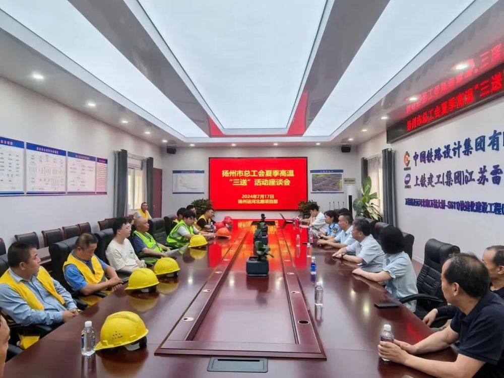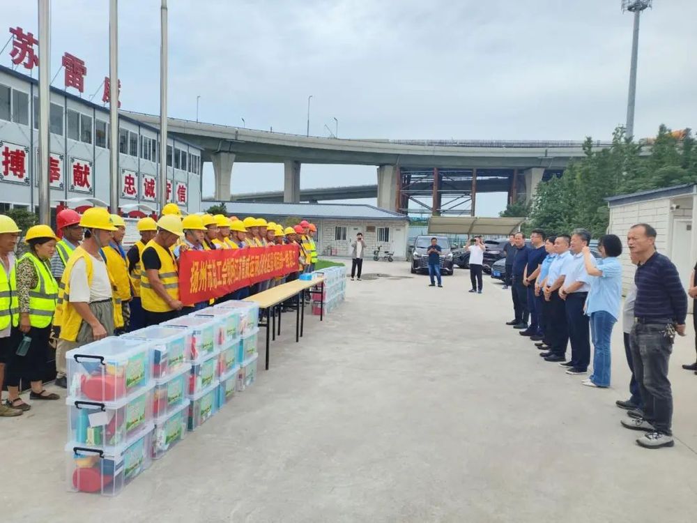7月17日,揚州市總工會副主席楊浩帶隊赴萬福路及運河北路(萬福大橋-S611)快速化建設工程(運河北路北延段)項目部開展夏季高溫“三送”慰問活動,城控集團副總經理季紅軍、市應急局專員郜宇、建設工會主任范華參加活動。