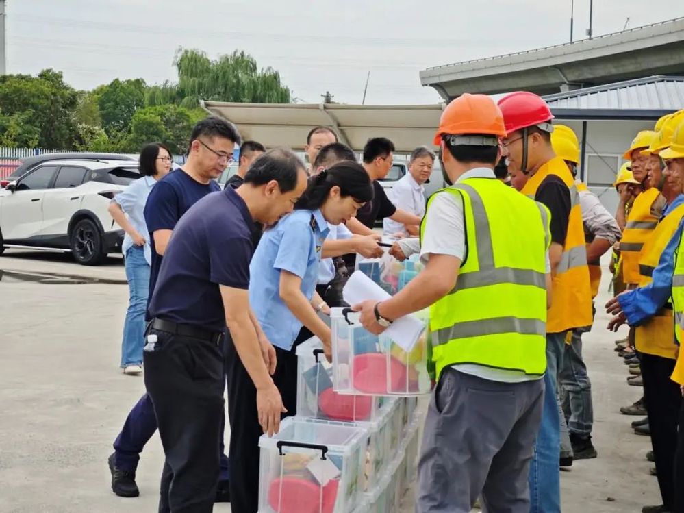 在施工現場,楊浩一行看望了工程建設者,發放了防暑降溫用品,并對大家不畏酷暑、堅守崗位表示了感謝,對運河路北延項目部所做的工作予以了肯定。