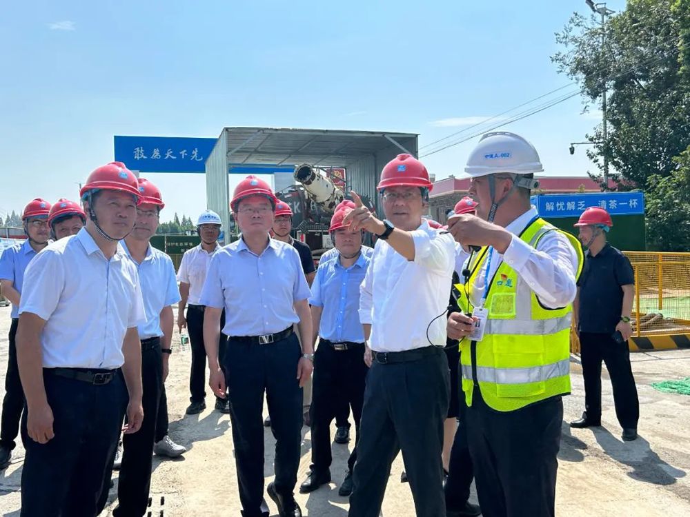 王進健一行來到萬福快速路東延建設工程項目施工現場,詳細了解項目質量安全、揚塵管控、建筑垃圾處理、智慧工地建設等事項,并就化解推進過程中存在的難點堵點問題指明方向、靶向施策,全力確保項目建設工作優質高效推進。