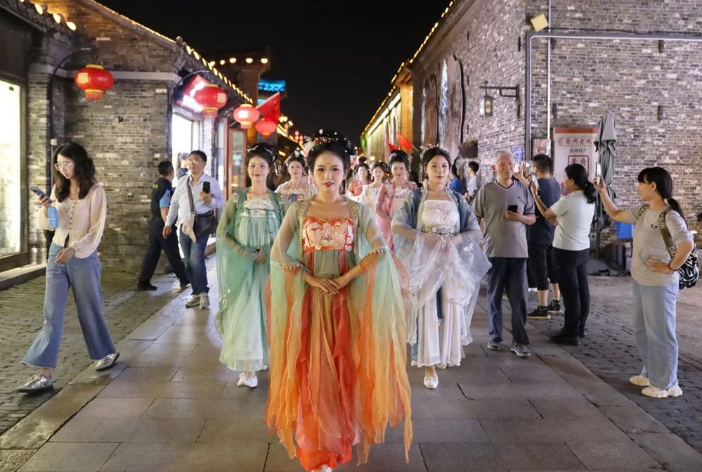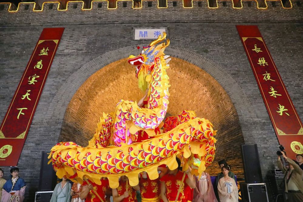 9月29日晚上的“迎國慶 共長樂”大型漢服巡游活動將國慶氛圍拉滿!50余人的漢服巡游隊伍,從長樂客棧出發(fā),一路向東至東城門折返。游客和市民熱情高漲,紛紛拿起手機,記錄精彩瞬間,在傳統(tǒng)舞龍表演中感受濃濃的節(jié)日氛圍。