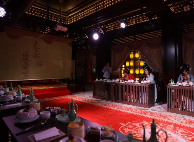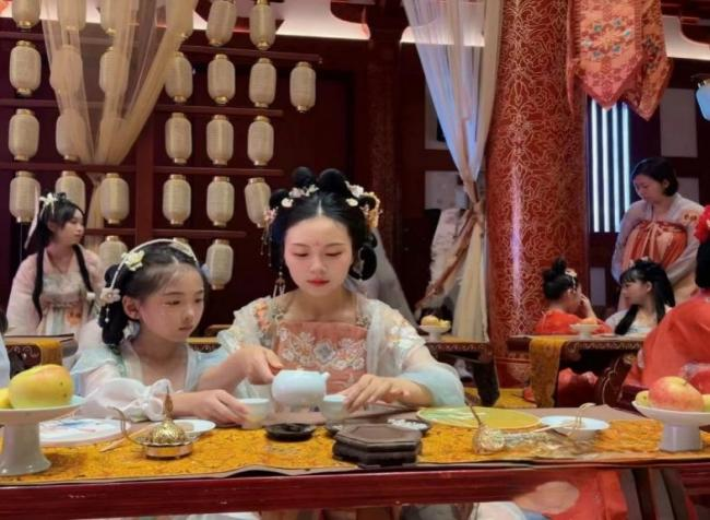 作為揚州首家沉浸式體驗文化餐飲項目,城控集團長樂客棧“鹽商宴”以其特有的沉浸式用餐體驗,收獲了省內外賓客的紛紛點贊。開宴前,身著古裝的“侍女們”以清代鹽商家宴禮節引導賓客入席,并與賓客一對一奉茶凈手,讓每個細節都拉滿儀式感。開宴后,“侍女們”在古樂聲中為賓客奉上一道道美食,并對菜品菜式進行文化講解,伴隨與每一道美食的文化內涵息息相關的歌舞、禮樂等文藝演出,讓清代鹽商家族禮儀與飲食文化結合的恰到好處。