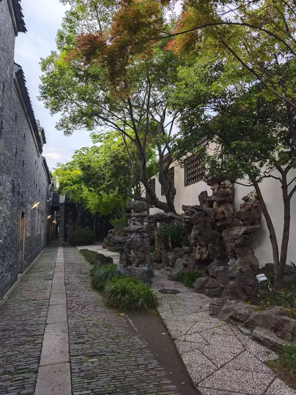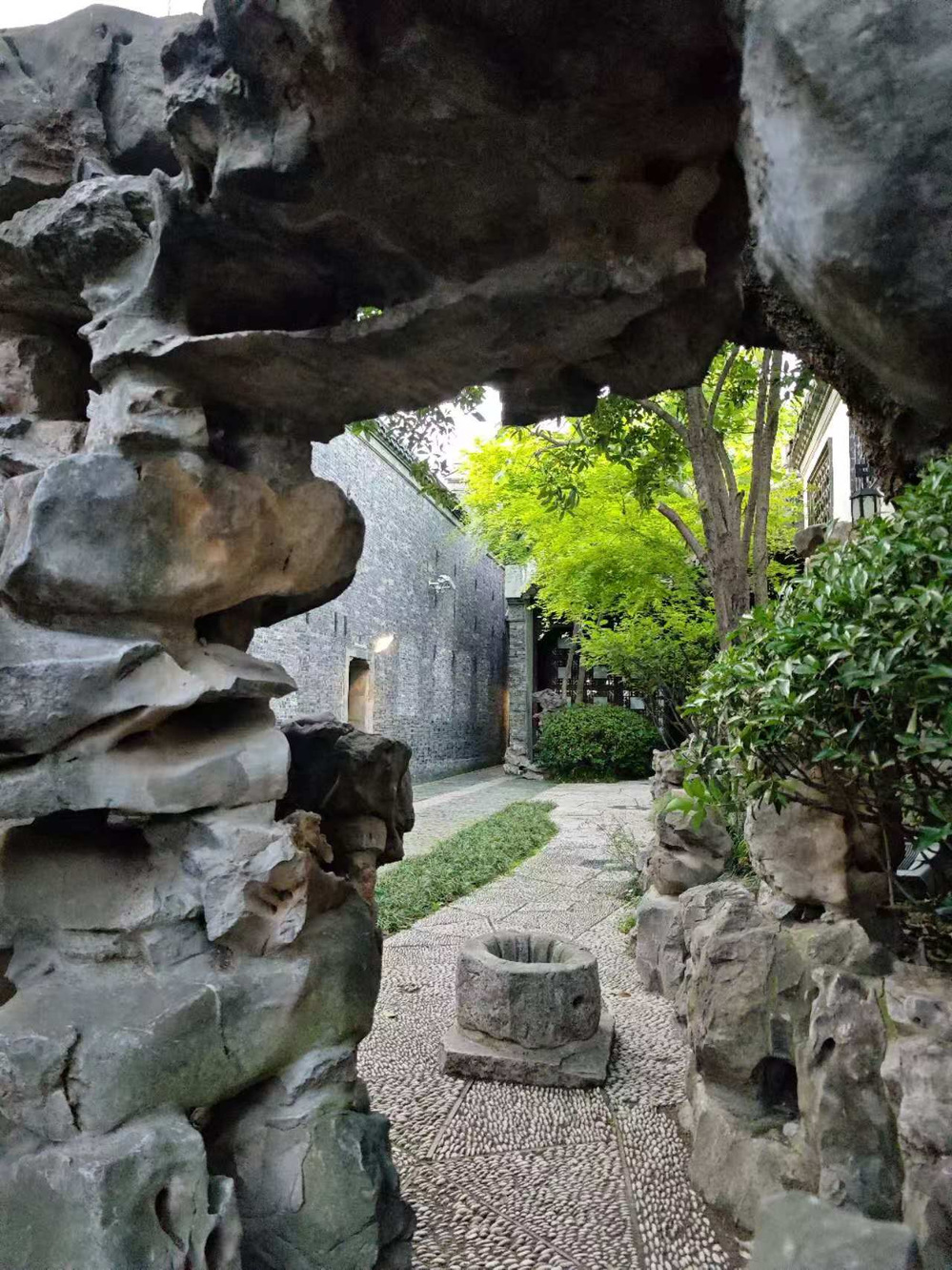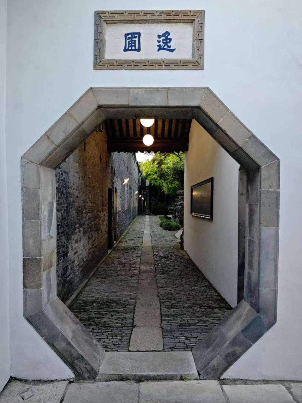 芥子納須彌,壺中有乾坤。從逸圃大門入,迎面有月門,額書“逸圃”二字,“逸”有安樂超群之意,“圃”即瓜果菜園之所,深諳園主田園意趣。月門內有廊修直,廊西有住宅五進,廊東湖石假山貼墻而筑,委婉屈曲,山旁筑牡丹臺,花時若錦。山間北頭之盡端,倚墻筑五邊形半亭,亭下有碧潭,清澈照人。亭旁有花廳三間,外廊天花,皆施淺雕,有白玉蘭、荷花、菊花、梅花,寓意“春夏秋冬”的磚雕,有五只蝙蝠圍住一個壽字,暗指“五福同壽”的版雕,匠心獨運,巧奪天工。沿花廳后小軒碴道轉人隔園,折向西北,可見西樓三間,面峰而筑,樓有盤梯可下,或可從假山轉入,亦或從住宅第五進回廊進入,還可從暗門登臨,園林泰斗陳從周評價此樓布局特點是為“上下錯綜,境界多變”。