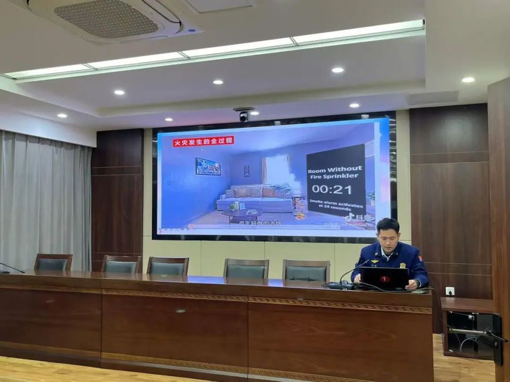 活動開始,李隊長以近幾年發生的多起消防安全事故為例,重點以家庭消防逃生及電瓶車充電為主要內容,用視頻講解的方式直觀展示了正確逃生方式及室內電瓶車充電的嚴重后果,提升了大家危險防范意識和避險能力。