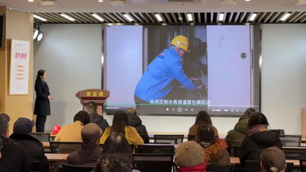 尤為引人注目的是,現場還播放了由水務微管家和小李服務隊參與制作的防寒視頻。視頻中,通過生動的情景模擬和實用的操作演示,將復雜的防寒知識轉化為易于理解和操作的步驟,讓居民朋友們在輕松愉快的氛圍中學習到了實用的防寒技能。這一創新形式極大地激發了居民的學習熱情,不少居民表示,這樣的視頻既直觀又實用,看一遍就能記住關鍵步驟。