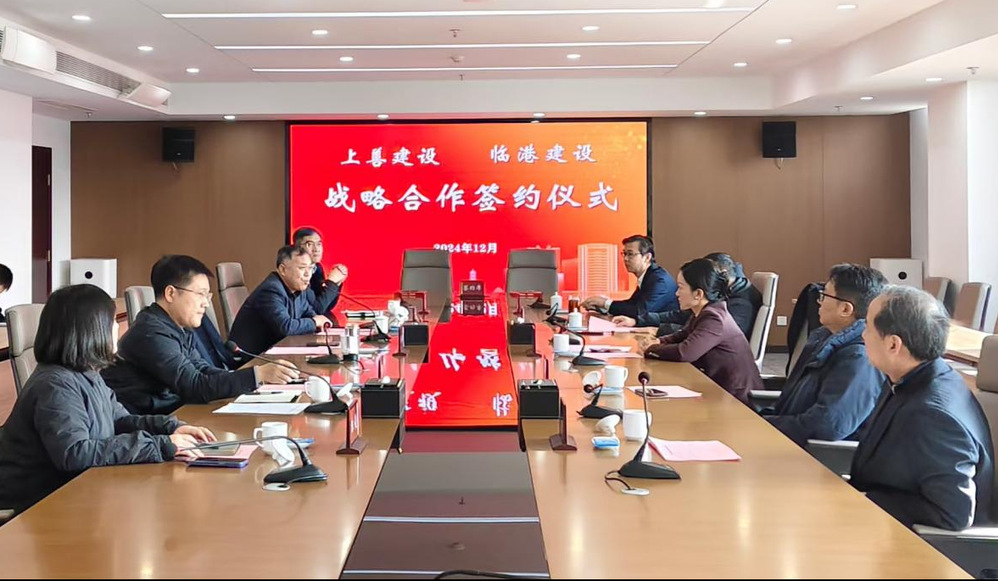 12月30日上午,上善公司與臨港公司簽署戰略合作協議。揚州經開區黨工委委員、管委會副主任孫海佳,揚州城控集團黨委副書記、總經理潘涵,副總經理周平,經開區國控集團、綠投集團、臨港公司和城控集團投發部、上善公司主要領導參加。