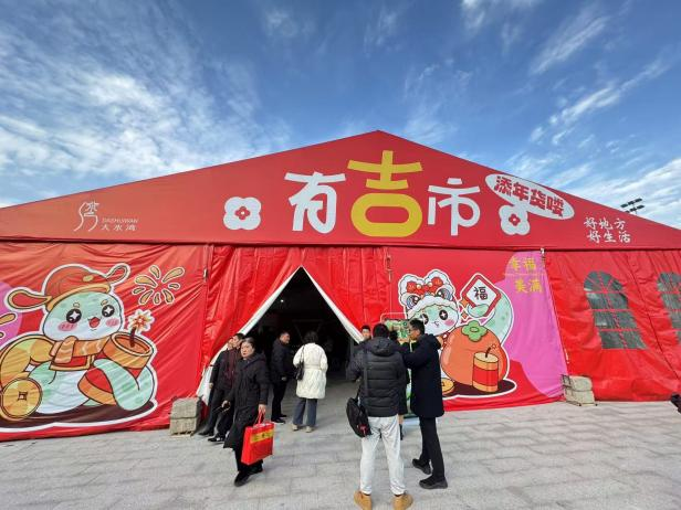 轉身來到古色古香的大水灣街區,年貨吉市同樣一片紅紅火火。戲臺上,表演精彩不斷,京劇、揚劇韻味悠長,劍舞、啦啦操動感十足,演員們的一顰一笑、一腔一調盡顯古韻新姿,與街區的紅墻青瓦、流水潺潺相得益彰,臺下觀眾的掌聲、叫好聲更為整個街區暈染出濃郁的文化氛圍。緊鄰戲臺的年貨區,貨品琳瑯滿目,臘味、堅果、包子、鹵貨、農副產品、各色水果等一應俱全,攤主們熱情招攬顧客,議價聲交織成新年的樂章。資產公司的用心也是隨處可見,提前規劃好攤位布置,保障消防通道暢通無阻,安排專人負責維持秩序、嚴格審核商品質量,讓市民放心采購。年貨吉市將持續十多日,資產公司將繼續保障年貨吉市安全穩定開展。資產公司將以此次跨年聯動為契機,不斷提升自身在活動策劃、安全保障、消費拉動等諸多方面運營管理水平,注重文化融合與體驗打造,結合傳統節日與地方特色,策劃更多精彩活動,讓嘉都匯與大水灣街區成為市民生活、休閑、娛樂的首選之地,持續為城市發展注入活力。