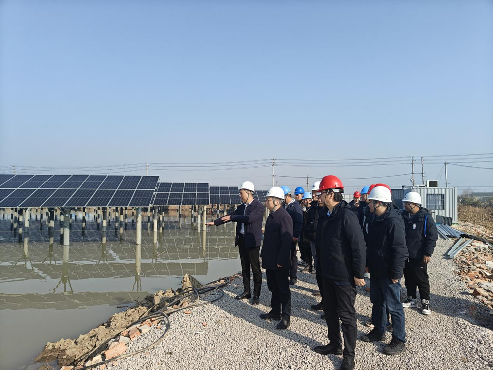 1月2日上午,集團(tuán)黨委委員、副總經(jīng)理孔德存帶隊(duì)調(diào)研潔源新能源公司公道漁光互補(bǔ)二期項(xiàng)目建設(shè)情況。潔源新能源公司、參建單位相關(guān)負(fù)責(zé)人參加調(diào)研。