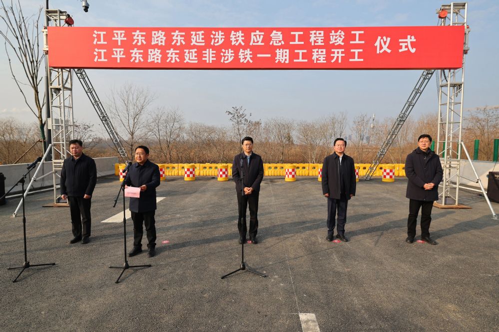 江平東路東延涉鐵應急工程竣工、江平東路東延非涉鐵一期工程開工儀式現場