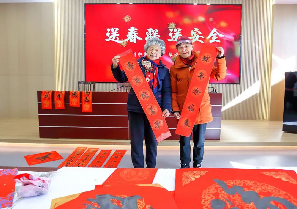 蛇年添瑞象,春日綻芳華。社區86歲的黃老先生和老伴早早來到了現場,即興書寫了一幅春聯。老伴湯女士說,手寫的春聯有溫度、接地氣,特別有過年的氣氛,還學到了實用的燃氣安全知識,感謝中燃公司送來的溫暖祝福。