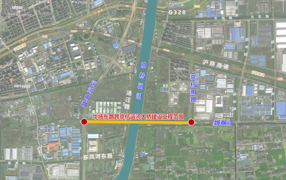 華揚東路跨京杭運河大橋建設工程采用雙向六車道標準,設計速度為50km/h,全長1.92km。其中,新建橋梁1座,主橋采用200m提籃拱橋,引橋采用混凝土連續(xù)箱梁。項目總投資約4.5億元。華陽東路是揚州城區(qū)規(guī)劃“二十五橫十七縱”主干路網(wǎng)的關鍵一環(huán),也是連接經濟開發(fā)區(qū)與廣陵區(qū)的交通命脈。大橋建成后,將有效緩解區(qū)域交通擁堵狀況,促進區(qū)域間經濟往來、資源共享與協(xié)同發(fā)展。