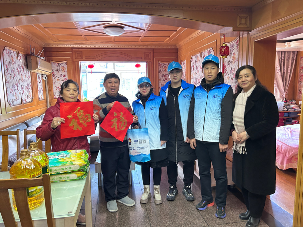 隨后,“水質安全衛士”志愿者們來到社區困難黨員群眾的家中,為他們提前送上“?!弊趾痛竺?、食用油等愛心物資。每到一戶,志愿者們都關切詢問他們的身體和生活狀況,傾聽困難與需求,未來將定期走訪、提供幫助,并祝福他們能夠度過一個歡樂祥和的春節。受助群眾十分感謝社區工作者與“水質安全衛士”志愿者們給他們帶來的關心和幫助,讓他們在寒冷的冬季也能感受到節日的溫馨和社會的溫暖。