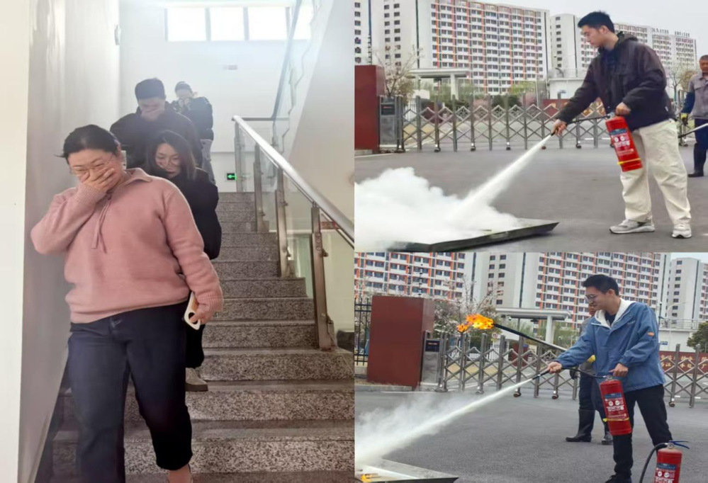 在應急演練環節,所有參培人員聽到警鈴聲響后,迅速沿樓梯有序撤離,成功在3分鐘安全時間之內疏散到指定地點,工作人員詳細講解了滅火器的操作要領并進行了示范,隨后現場人員逐一上前進行了實操演練。