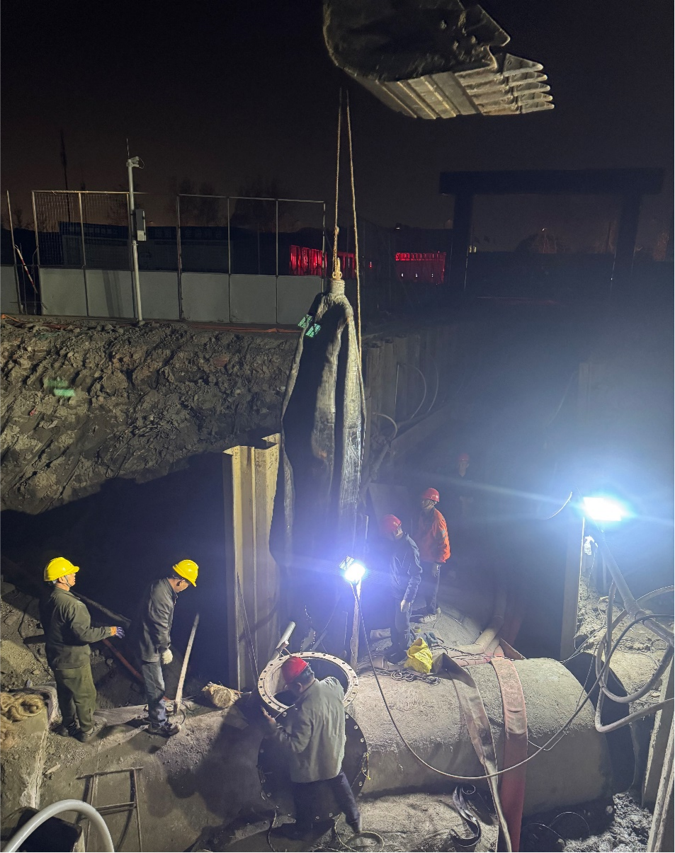作為保障汛期排水系統(tǒng)穩(wěn)定的核心環(huán)節(jié),施工需在不停產(chǎn)、不影響污水處理的前提下完成導(dǎo)流切換,同時(shí)涉及高水位作業(yè)、夜間施工及生態(tài)保護(hù)等要求。在此情況下,公司高度重視,聯(lián)合設(shè)計(jì)單位、上善公司及市政管網(wǎng)公司成立專項(xiàng)工作組,召開多輪技術(shù)論證會(huì),創(chuàng)新制定了“分段導(dǎo)流+動(dòng)態(tài)調(diào)控+雙保險(xiǎn)封堵”的施工方案,并調(diào)集精銳施工力量,提前部署應(yīng)急物資,組織專業(yè)潛水團(tuán)隊(duì),實(shí)施對(duì)管道流量、水質(zhì)及周邊環(huán)境進(jìn)行無間斷監(jiān)控,以“分鐘”為單位倒排工期,確保施工全程安全可控。