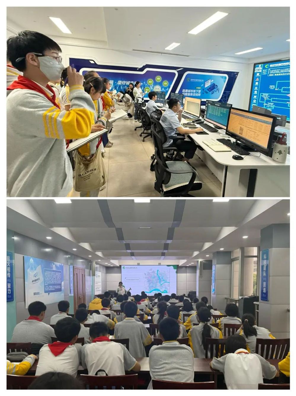 請進來 開展環保知識“親實踐”4月24日,管網公司迎來了梅嶺中學初一年級的學生們,現場,890管網服務隊的成員化身“管道醫生”,帶領學生們實地參觀了東花園污水提升泵站,詳細介紹了泵站的工作原理,同時講解了多級泵站提升輸送至污水處理廠的完整流程,通過“觀摩+講解”的方式讓同學們直觀了解了污水泵站的基本工藝流程,以及在城市生態治理中的重要實踐意義。隨后,管道醫生們帶領同學們參觀了中控室,以通俗易懂的語言對SCADA、GIS、城排通等系統進行解讀,讓學生們可以從自己的視角了解地下排水管網智慧化運維與調度原理,以及污水設施運行養護的閉環和全生命周期的智慧化管理的各個階段。最后,管道醫生圍繞城市排水管道的功能、分布特點以及雨污分流的重要性、城市的水循環過程和管道醫生的專用設備等話題,與學生們進行了互動交流,共同探討如何保護揚州的生態水環境。
