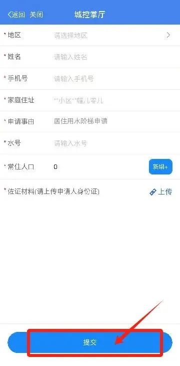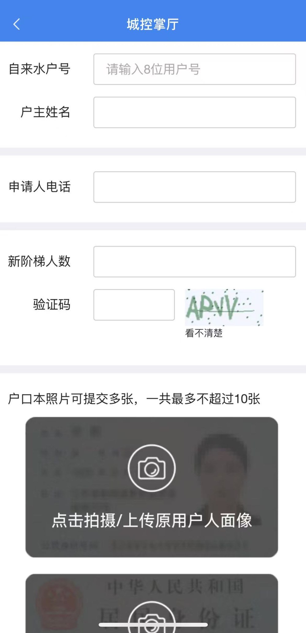 點擊所需辦理業務,進入頁面后,按要求填寫。(此處以自來水為例)