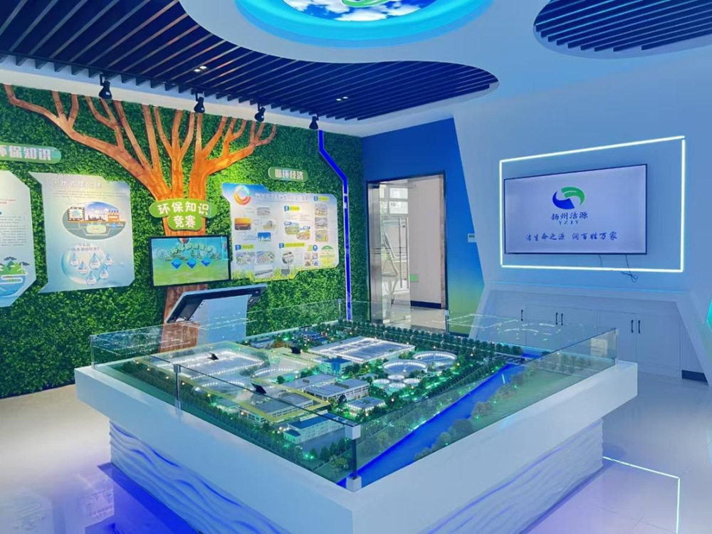 潔源環(huán)境公司一直積極致力于打造集生態(tài)知識科普、環(huán)保實踐體驗、綠色理念傳播于一體的綜合性環(huán)保教育平臺。內(nèi)部共設(shè)有1個總館和3個分館,室內(nèi)展廳內(nèi)設(shè)有2套廠區(qū)布局沙盤、3套宣傳大屏、2套宣傳滾動屏、1套人機互動觸摸屏、1套交互式答題機等多媒體設(shè)施;室外設(shè)施主要涵蓋污水預處理、生物處理和提標段處理、中水回用等污水處理設(shè)施。