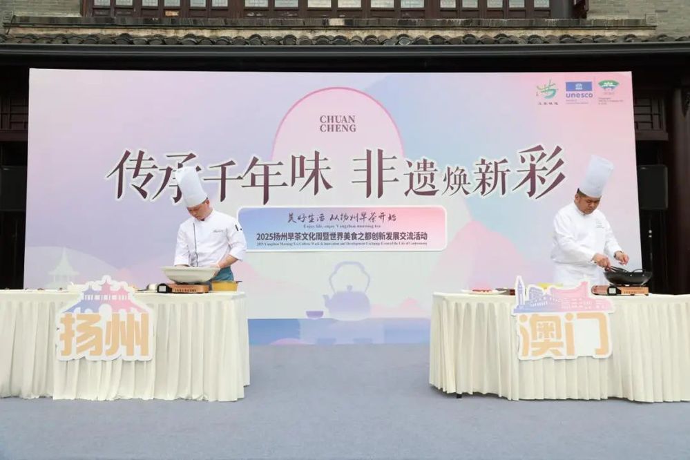 6月6日,“傳承千年味、非遺煥新彩”2025揚州早茶文化周分會場暨世界美食之都創新發展交流活動在大水灣街區隆重舉行。