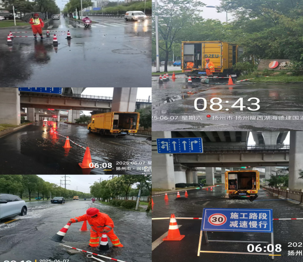 在排澇現場,工作人員在規范做好積水路段安全提示、圍擋及行人、車輛導流的基礎上,用撬棍、鋼筋勾打開積水點周邊雨污水井蓋助排雨水,用排水設備抽排路面積水,最短時間內消除了路段積水,及時恢復路面正常通行。截止6月7日早晨7時左右,公司管轄范圍內的積水路段基本消除。同時,工作人員在涉及送考路線加強來回巡查,為防止發生意外,重點路段還安排了專人值守。