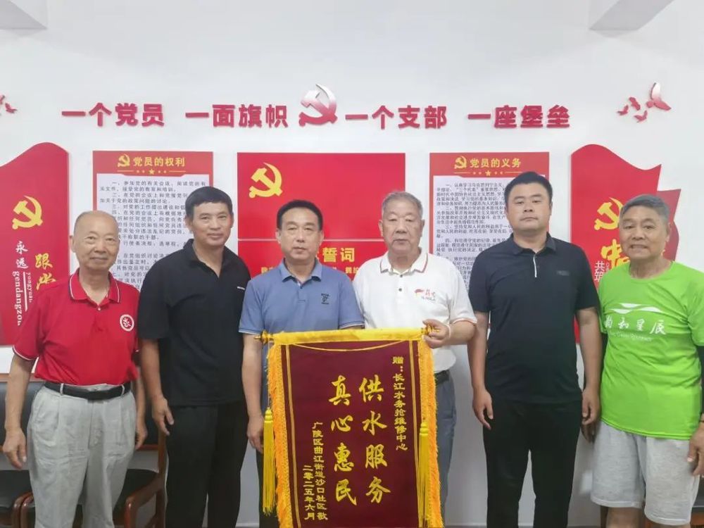 6月17日上午,沙口社區老年活動室負責人來到長江水務搶維修中心辦公樓,將寫有供水服務,真心惠民的錦旗贈予搶維修中心,并表示此行重點是表達對長江水務“管子鉗突擊隊”解決老年活動室用水困難的感謝。