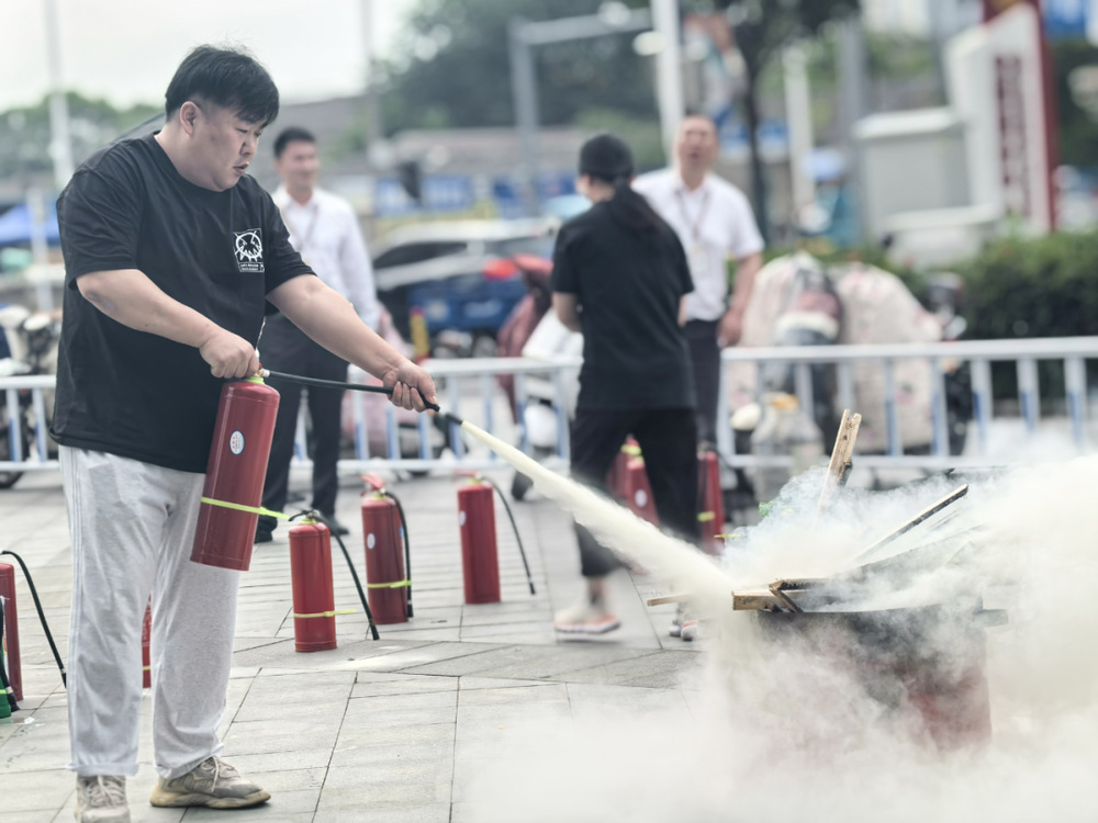 演練前,消防救援人員結(jié)合商場(chǎng)人員密集、易燃商品多等特點(diǎn),重點(diǎn)講解了火災(zāi)隱患排查、初期火災(zāi)撲救及人員疏散逃生技巧,并現(xiàn)場(chǎng)演示了滅火器、防煙面罩、滅火毯等消防設(shè)備的使用方法。隨后,模擬商場(chǎng)一樓某燃?xì)馍啼伆l(fā)生火情,商場(chǎng)立即啟動(dòng)應(yīng)急預(yù)案:廣播系統(tǒng)發(fā)布疏散指令,微型消防站隊(duì)員攜帶裝備趕赴現(xiàn)場(chǎng)撲救初期火災(zāi),安保人員迅速封鎖出入口,疏散組引導(dǎo)人員撤離,2分30秒內(nèi)全員安全疏散。