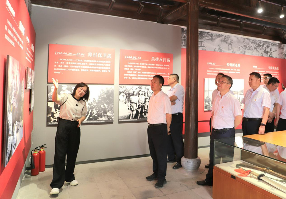 紀念館內,泛黃的史料呈現著斑駁的抗戰圖景。跟隨講解員的細致講述,大家詳細了解了陳毅、粟裕率領新四軍在此建立蘇北指揮部的歷史脈絡,系統學習了新四軍在蘇北抗戰歷程與革命事跡。觀過程中,黨員們不時駐足于作戰地圖前,凝視著戰士用過的槍械、村民支援的布鞋,在以少勝多、軍民同心的史料紀實中,深切感悟“聽黨指揮、敢打必勝”的鐵軍精神。