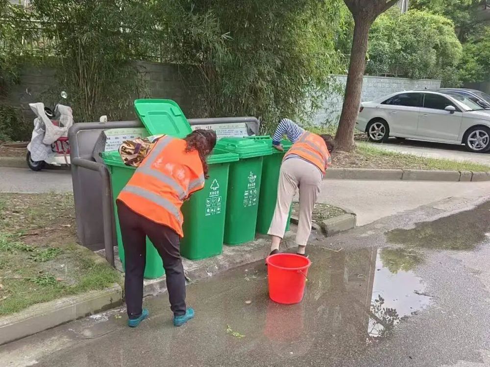 巡查時(shí),陳阿姨發(fā)現(xiàn)佳園垃圾分類站旁有散落的垃圾,立即聯(lián)系清運(yùn)車。等處理完回到休息室,已是晚上7點(diǎn)。她喝了口水,又拿起手電筒去檢查樓道衛(wèi)生。數(shù)據(jù)顯示,當(dāng)日保潔團(tuán)隊(duì)清運(yùn)垃圾2.3噸,擦拭公共設(shè)施137處,清理衛(wèi)生死角9處。