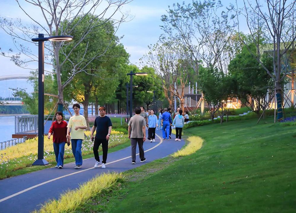 在這里,水清、岸綠、景美,市民和游客置身于流動(dòng)的生態(tài)畫卷,休閑娛樂、放飛自我、流連忘返,共享綠意盎然的濱水步道,感受歷史與現(xiàn)代的交融、自然與人文的共鳴。
