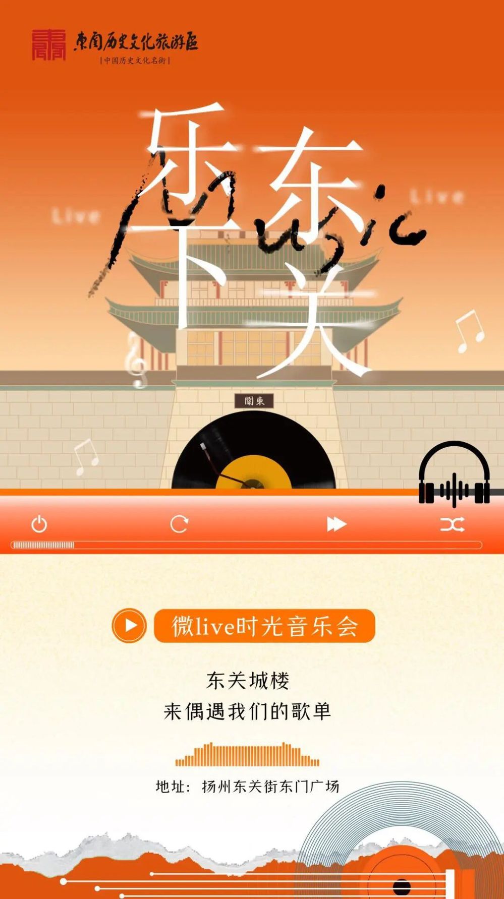 揚(yáng)州東關(guān)街,這座承載著千年歷史的文旅名片,青磚黛瓦間流淌著廣陵古城的煙火與韻味。為進(jìn)一步挖掘其文旅潛力,推動(dòng)音樂(lè)藝術(shù)與古城文化深度融合,響應(yīng)文旅產(chǎn)業(yè)高質(zhì)量發(fā)展需求,推動(dòng)古城夜經(jīng)濟(jì),揚(yáng)州市名城建設(shè)有限公司擬舉辦 “樂(lè)下東關(guān)” 微 Live 時(shí)光音樂(lè)會(huì),讓千年城墻下響起 “流動(dòng)的樂(lè)章”,為市民與游客帶來(lái)全新的文化體驗(yàn)。