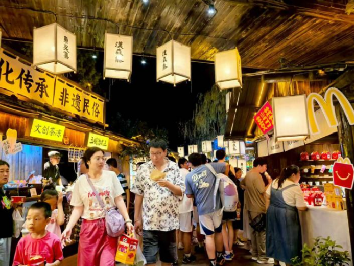 作為江蘇省首批數字人民幣文旅應用集聚區(qū),街區(qū)不斷創(chuàng)新“揚州老字號+數字文創(chuàng)”的文旅消費模式,謝馥春、三和四美等20余家老字號推出數字人民幣專屬折扣。此外,街區(qū)還打造“月下東關·春日雅集”“漢森熊·游園會”等非遺市集,日均吸引超1.95萬人次參與拓印團扇、生肖剪紙等互動體驗,推動傳統(tǒng)商戶數字化轉型率有效提升,形成“日賞非遺、夜享雅韻”的全時段消費閉環(huán)。