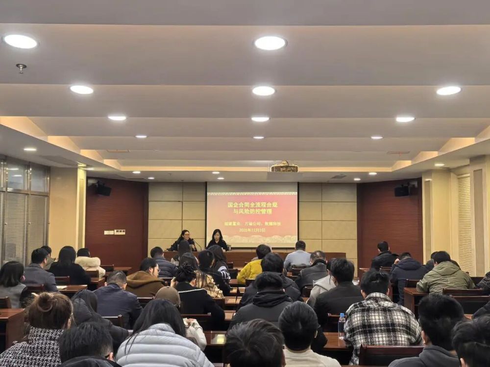 為提升職工法律風險防范意識,增強合同合規管理能力與履職水平,積極響應集團“12·9”黨風廉政教育日宣傳教育要求,12月3日下午,置業公司、萬福公司、數慧科技公司組織開展“國企合同全流程合規與風險防控”專題培訓,各公司職能部門及合同業務相關崗位人員參加了培訓。